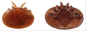Le femmine sono le sole a realizzare l’azione parassitaria diretta spolatrice e meccanico-traumatica a carico delle api. Possono vivere per diversi mesi, sono di colore rosso intenso/marrone e presentano forma ellittica Il dorso, di consistenza coriacea, è convesso e ricoperto di peli che sono presenti anche lungo il bordo, a pettine su ciascun lato.