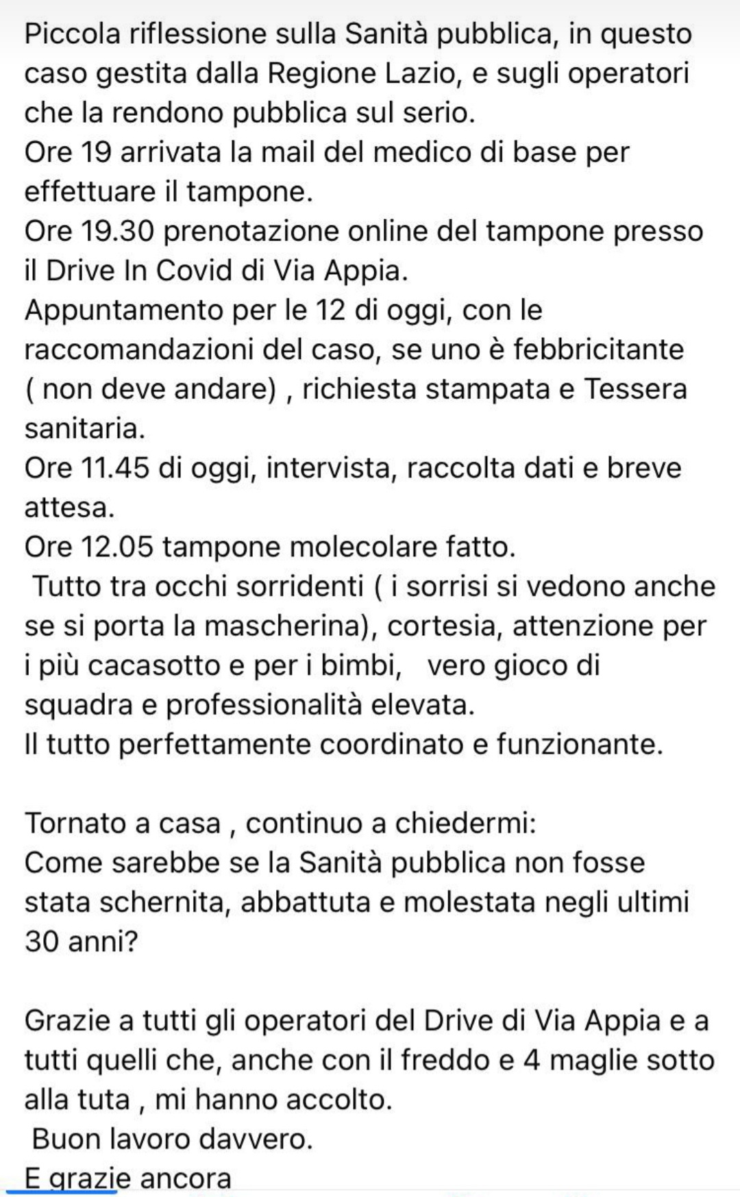 L’impegno è iniziato con la diagnosi di laboratorio e da agosto siamo diventati “Drive In” per l’esecuzione di tamponi ai cittadini, in collaborazione con i medici e gli infermieri USCAR.