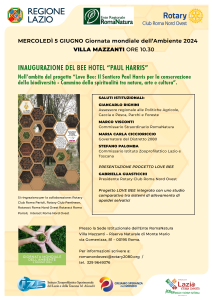 E’ in questo contesto che si inserisce la partecipazione dell’Istituto nel progetto LOVE BEE con l’inaugurazione del BEE Hotel PAUL HARRIS, a Villa Mazzanti sede Istituzionale di Roma Natura.