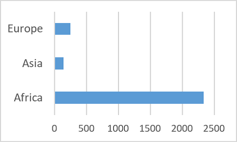 Nel grafico sono riportate le “perdite” (soggetti morti + soggetti abbattuti), con una prevalenza del continente africano, soprattutto Nigeria e Zambia.