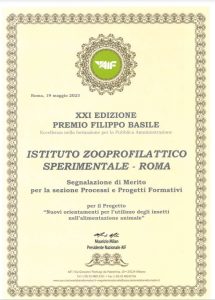 Il Comitato scientifico della XXI^ edizione del Premio Basile per la formazione nella P.A. ha conferito all’ Istituto Zooprofilattico Lazio e Toscana la segnalazione di merito nella sezione “Processi e progetti formativi” per il lavoro “Nuovi orientamenti per l’utilizzo degli insetti nell’alimentazione animale”.