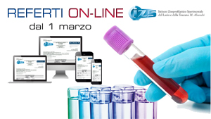 Il servizio Referti On Line accessibile all’indirizzo http://referti.izslt.it consente di consultare direttamente da casa, da cellulare e smartphone i risultati dei propri esami di laboratorio. Il servizio è gratuito, attivo 24 ore su 24 e finalizzato ad agevolare e migliorare i rapporti con gli utenti. Le credenziali vengono rilasciate al momento della consegna dei campioni da esaminare.