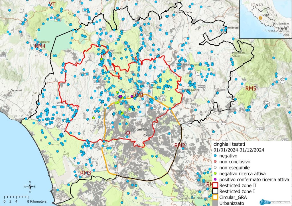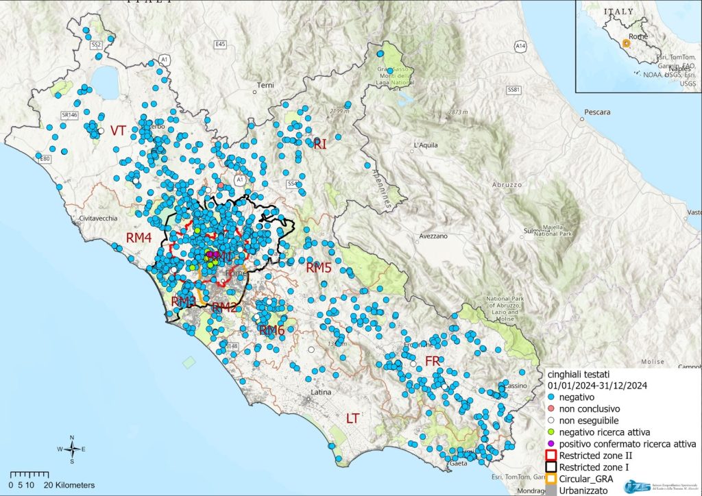 Mappa utile alla pianificazione dei controlli per Peste Suina Africana nella regione Lazio