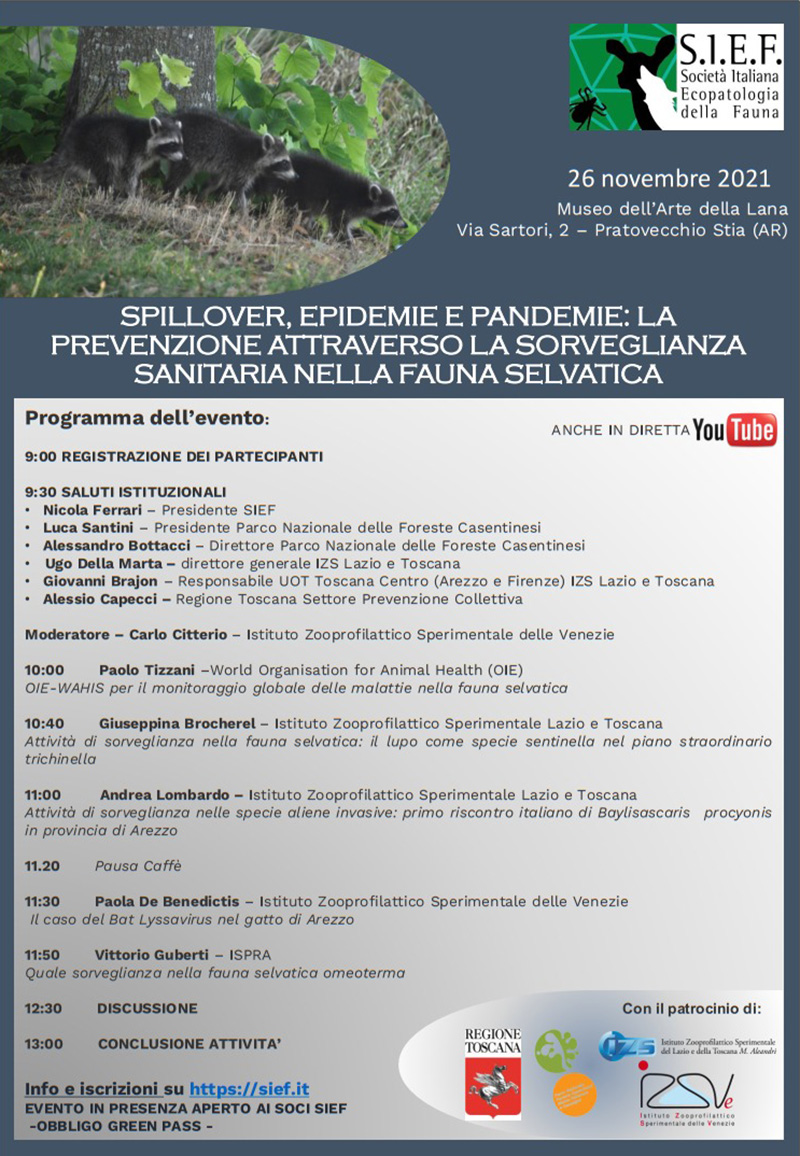 “Spillover, epidemie e pandemie: la prevenzione attraverso la sorveglianza sanitaria nella fauna selvatica” – il convegno organizzato dalla Società Italiana di Ecopatologia della Fauna.