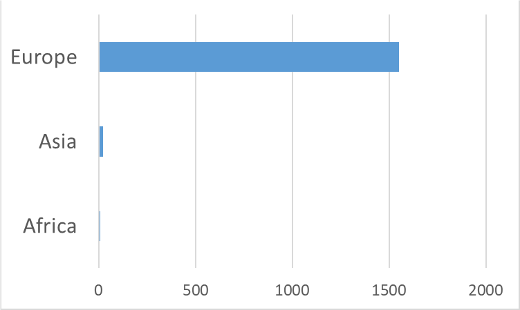 Nel grafico sono riportate le “perdite” (soggetti morti + soggetti abbattuti), con una prevalenza del continente europeo, con questa distribuzione: 1487 animali in Romania, 62 Ucraina, 2 Russia.