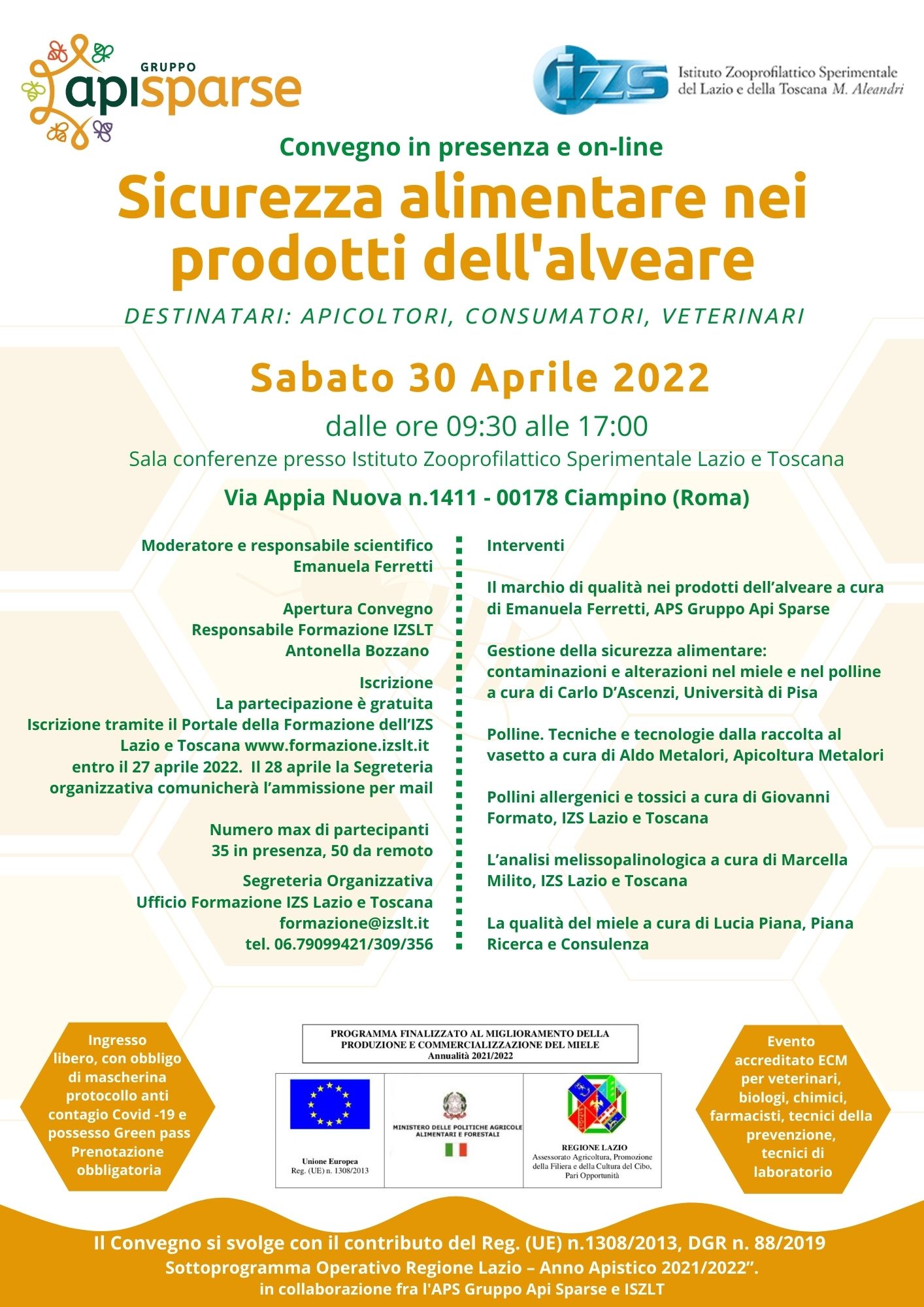 Organizzazione: IZS Lazio e Toscana e Gruppo Api Sparse.