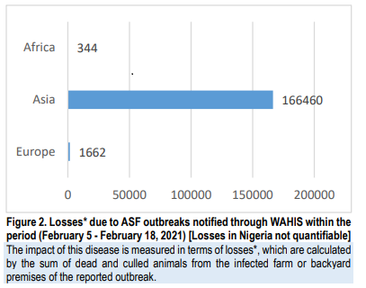 Nel Bollettino OIE n. 64 viene riportata la situazione della Peste suina africana nel mondo nel periodo 5-18 febbraio 2021.
