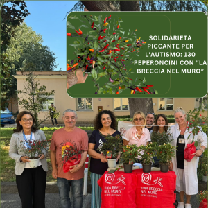Venerdì 27 settembre, i volontari dell’associazione “Una Breccia nel Muro” hanno organizzato un vivace “mercatino di solidarietà” allestendo un’esposizione di 130 piantine di peperoncino. Il contributo simbolico richiesto per ogni piantina non è solo il prezzo di un peperoncino, ma rappresenta un’opportunità concreta per sostenere i bambini affetti da spettro autistico: i fondi raccolti verranno infatti destinati a garantire il primo trattamento terapeutico a bambini dai 18 mesi ai 12 anni subito dopo la diagnosi.