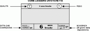 Successivamente sul guscio di ogni uovo viene apposto un codice (operazione detta “stampigliatura”) che permette di poter risalire all’azienda di provenienza e conoscere il sistema di allevamento che è stato utilizzato. Le uova che saranno destinate alla vendita al dettaglio vengono confezionate utilizzando imballaggi costituiti di cartone o plastica di dimensioni variabili. L’etichetta presente sulla confezione deve contenere per legge delle precise informazioni: